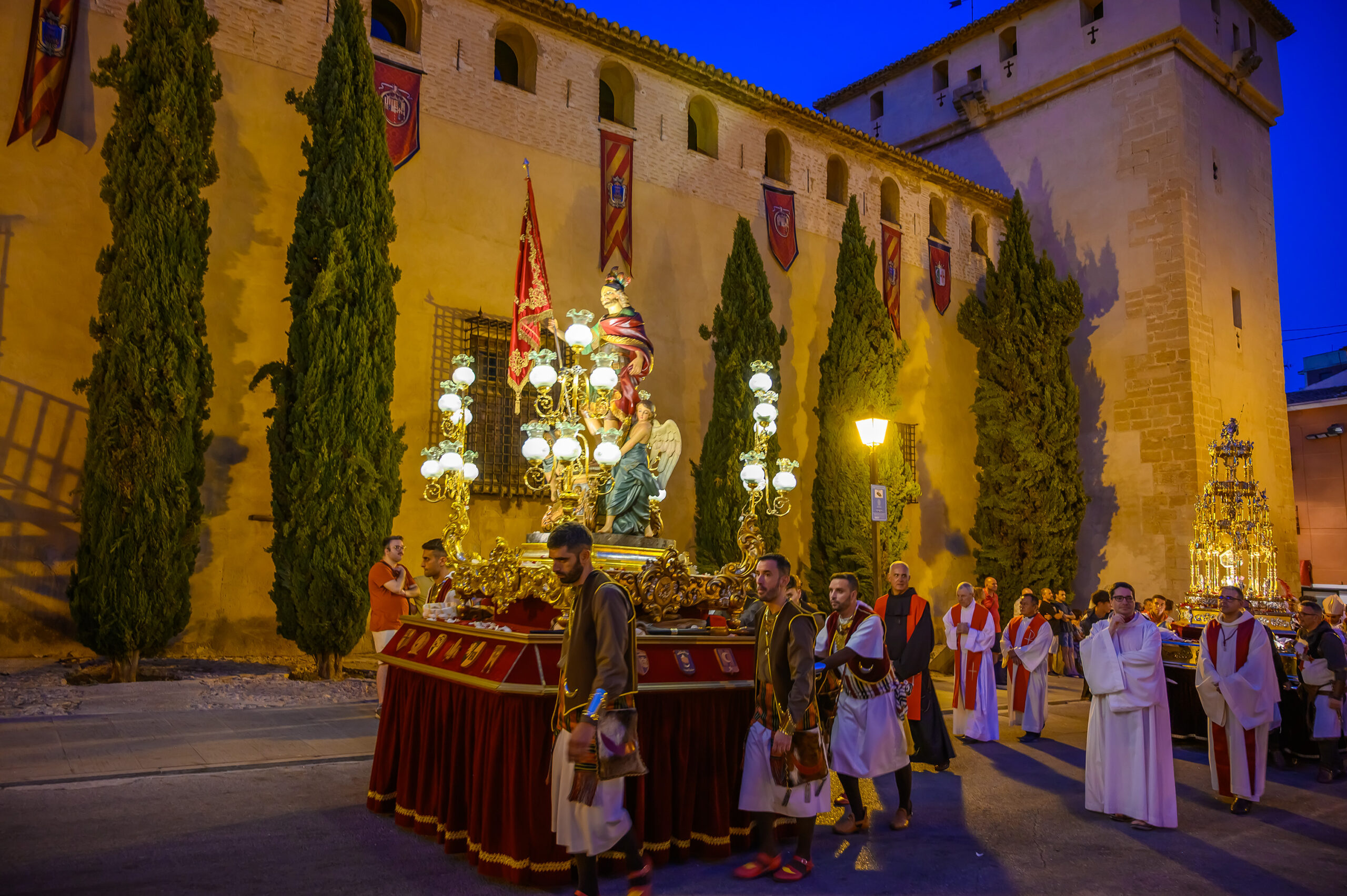 El 10 de mayo del 1600, el Consejo General se reúne bajo la autoridad de la Justicia y, por unanimidad, aprueban que se celebre la fiesta del patrón el día 13 de agosto, día en que San Hipólito fue martirizado. Las manifestaciones festivas van ampliándose a lo largo de los siglos, configurándose la celebración hasta tomar la forma que hoy tiene, una gran y arraigada fiesta de Moros y Cristianos.